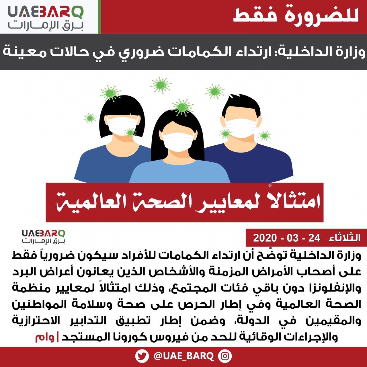 برق الإمارات على تويتر وزارة الداخلية ارتداء الكمامات ضروري في حالات معينة برق الإمارات
