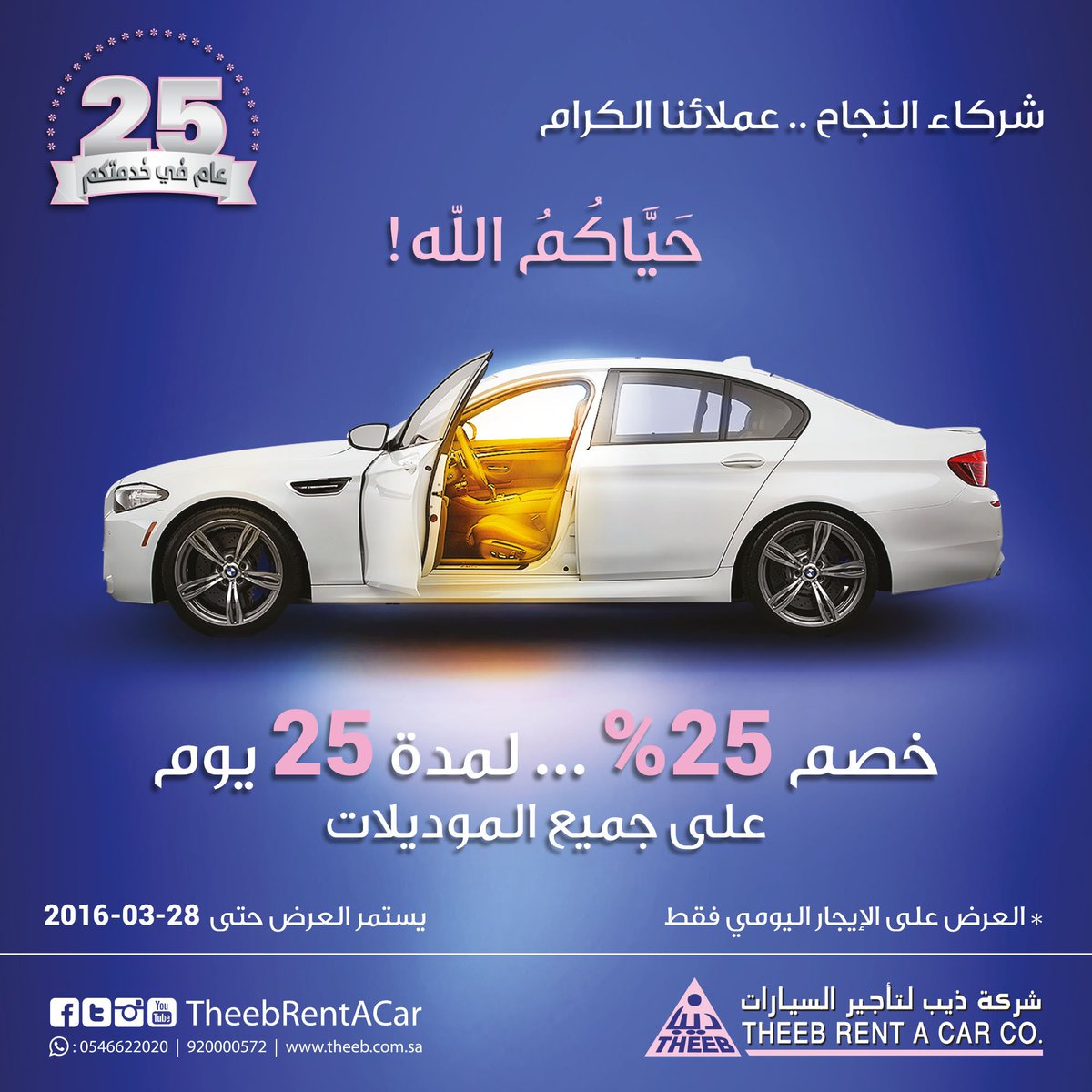 ذيب لتأجير السيارات On Twitter اغتنم فرصة عرض شركاء النجاح خصم 25 على جميع أنواع السيارات بمناسبة 25 عام على إنطلاق ذيب لتأجير السيارات Https T Co Nzqlkweijp