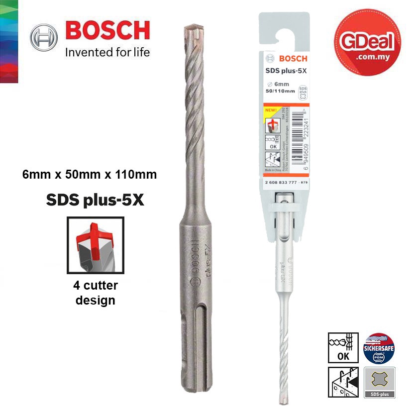 Jaden Bosch Sds Plus 5x Masonry Reinforced Concrete Hammer Drill Bit 6mm X 50mm X 110mm 2264 Shopee Malaysia