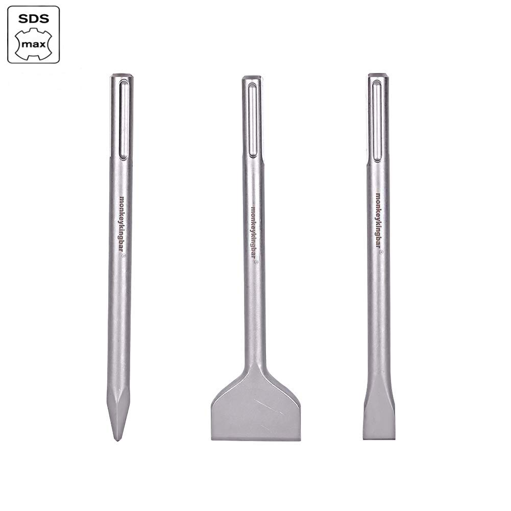 Monkey King Bar Sds Max Bits 12inch Sds Max Chisel Bit Rotary Hammer Drill Chisel Bits Set Masonry Drill Bits Set Demolition Bits Masonry Tools 3pcs Point Chisel Scaling Chisel Flat Chisels